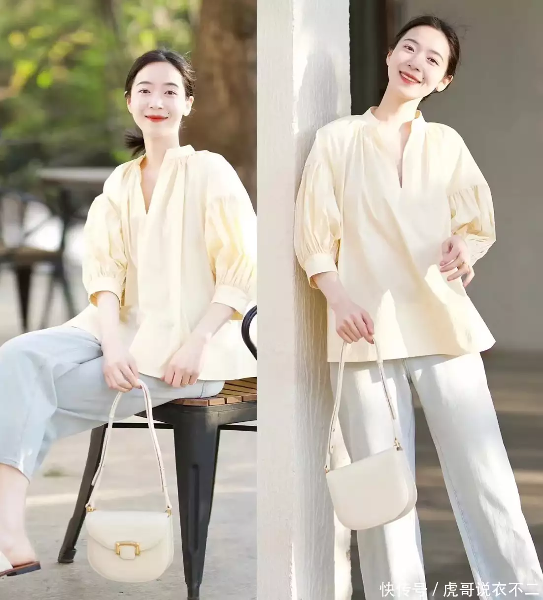 千万别觉得衬衣的艺术风格特别乏味,那是因为款式没里韦县,能先在色调方面入手,即便比起此基础粉色,却是上图整件浅黄色衬衣更加抢眼而这位女士在配搭时,也将衬衣作为外搭应用在了外型里,看起来更加潇洒时髦,也能与内搭的背心形成具有立体感的叠穿。