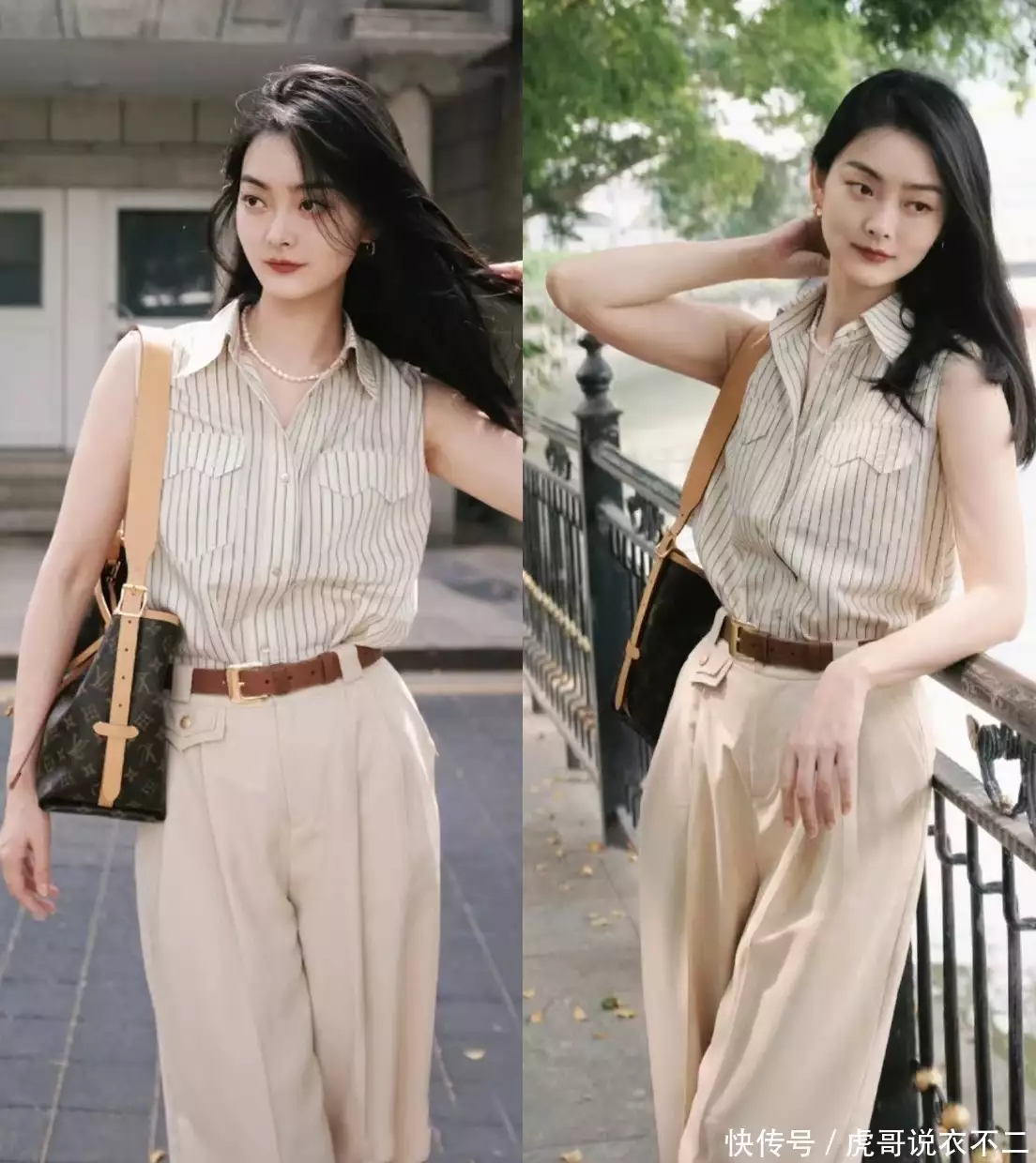 到了夏天以后,大众对于穿搭的诉求却是以清凉为主,因此提高露肤度是很有必要性的,就像图中整件衬衣选用的吊带结构设计一样,能将下半身的量感减少,更便于与阔腿裤配搭出闲适又清爽的一面二、收紧的衬衫不论是为的是更舒适的衣著感,或是将脚部存在的优点遮住,结构设计更加收紧的衬衫都是很有必要性的。