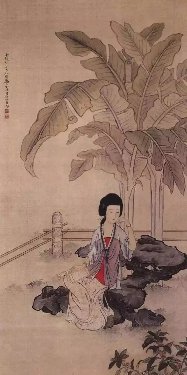 清 吕彤《蕉荫读书图》《蕉荫读书图》是中国清代画家吕彤的国画作品,清华大学美术学院藏图中绿蕉似伞盖,一女子坐于湖石之上读书,不知是有感于书中所写,抑或想起什么心事,正支颐沉思姿态清丽超绝,同时又显得典雅、妩媚、娴静。