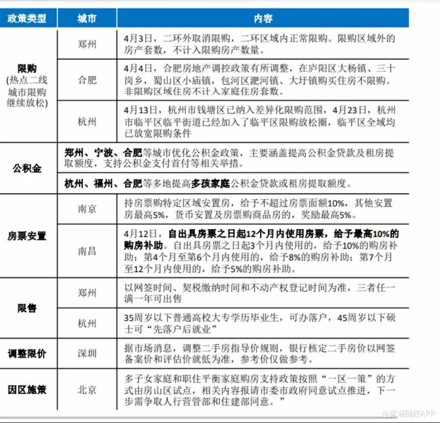 比如说,郑州方面,4月3日,二环外取消限购,二环区域内正常限购限购区域外的房产套数,不计入限购房产数量杭州方面,4月13日,杭州市钱塘区已纳入差异化限购范围,4月23日,杭州市临平区临平街道已经加入了临平区限购放松圈,临平区全域均已放宽限购条件。