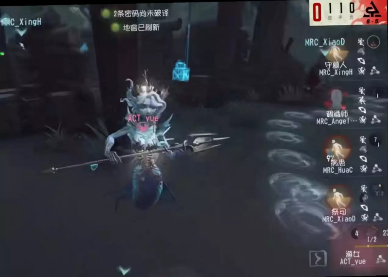 开门战中,快速制伏挂上守墓人后果断传送,逼走门内的病患后精准定位调酒师将其留下,再次夺下三抓
