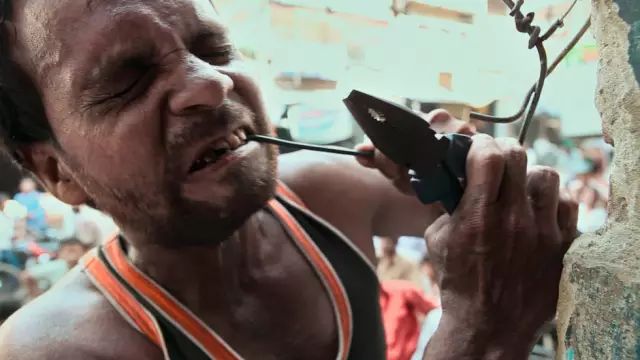 两个巴基斯坦钳工已经开始进行剥线。看一看他几口不规整的骨头,她们不必剥线钳!她们的各式各样剥线钳根本无法卖了。