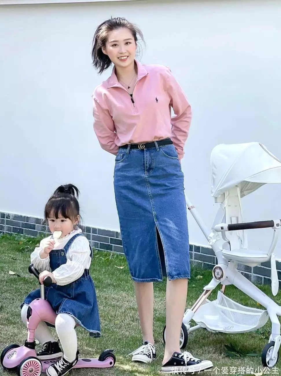 小黑衫和裙装的女团,就能够给人一种“上半身开会,下半身约会”的即视感,尤其是这种开叉配饰的牛仔直筒裙,对身材的包容性极高,无论你是胯宽臀肥,却是腿型不直,牛仔裙都能够成功的改善配搭单品③一片式的高腰短裙。