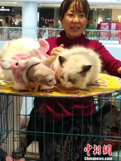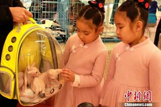 无毛猫深受小朋友喜爱 赵桂华 摄被关在笼子里的这只云斯坦达脂,发现有好几只别的宠物猫站在他的笼子上面,他先是把头伸到上面,和乖巧的奇奇亲亲,当他发现气味不对,马上发出凶狠的叫声,用爪子向奇奇扑去女主人告诉本报记者,这就是斯坦达脂的野性所在。