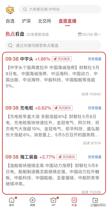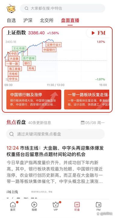 第1步:关上财供销社APP,点选顶部「盯盘」,重定向到盯盘股。