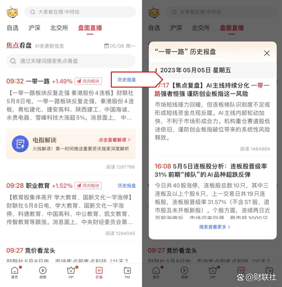 「技术面现场直播」囊括沪指大盘趋势及焦点进场机会2大模块,统计数据标注叠加资料库精选,让你清晰地直击技术面核心脉络,拨云见日。