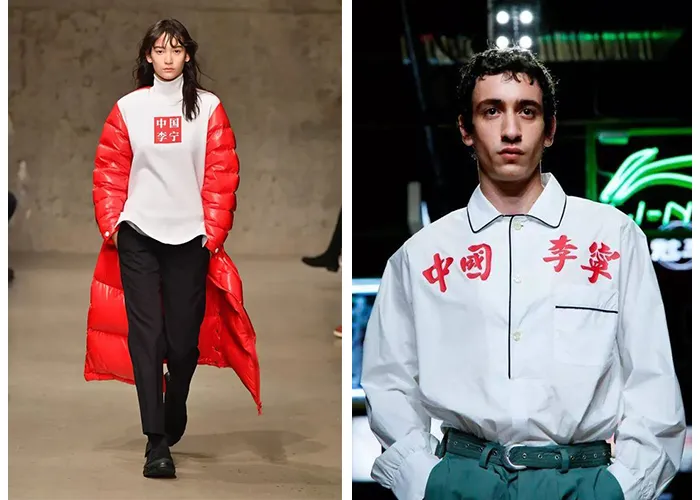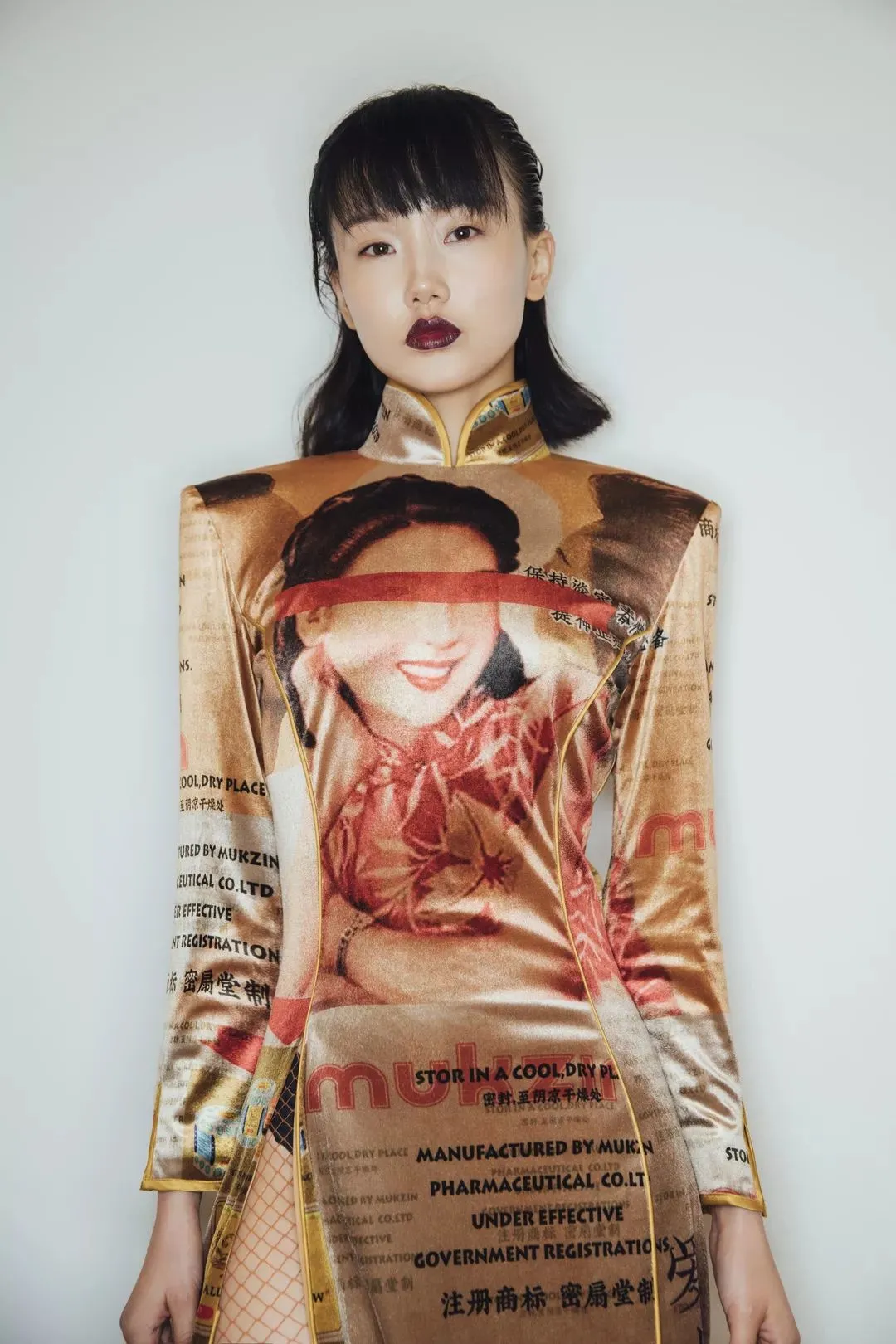 艺术鲜明特征:将中国元素、特征甚至是标志,融合了时尚潮流设计,元素表现为盘扣、龙图案、中国字体、中式亮片...等等