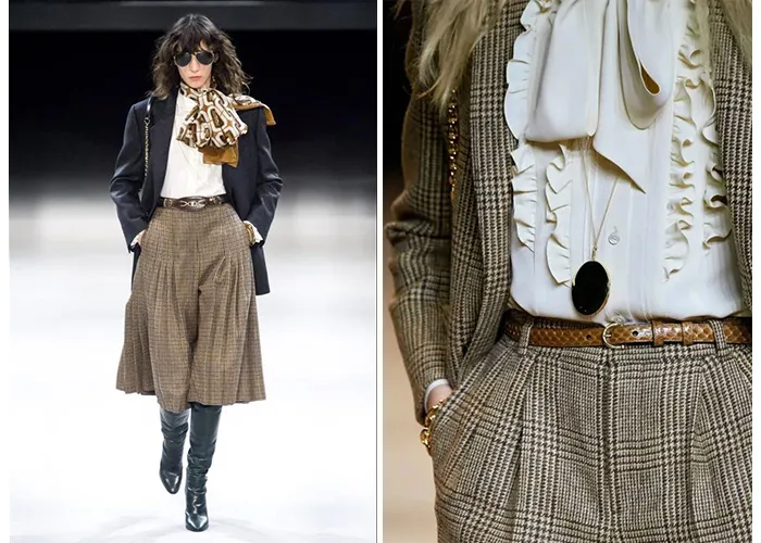 艺术鲜明特征:艺术风格以复古风精致为主,但是整体优雅低调~单品有斗篷衬衣、丝绸织物上衣、复古风丝巾、过膝半裙、长靴、精致腰带、墨镜。