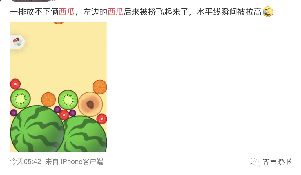 “制备大西瓜”因为门槛低、接地气,又颇具社交娱乐性,大家玩完还能发到贴文比拼一下分数,迅速在网上伤风败俗