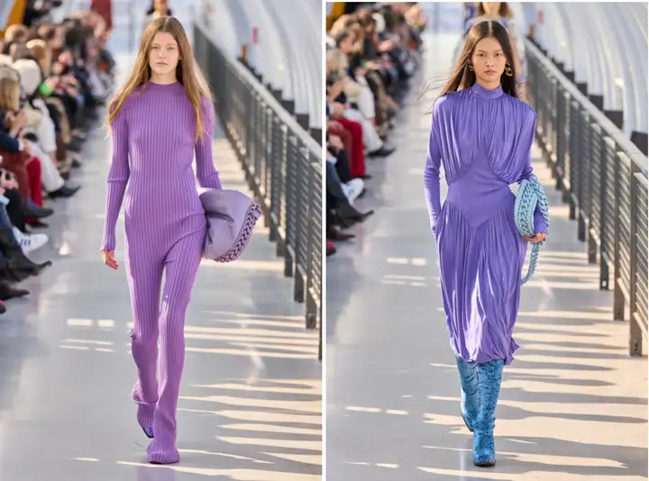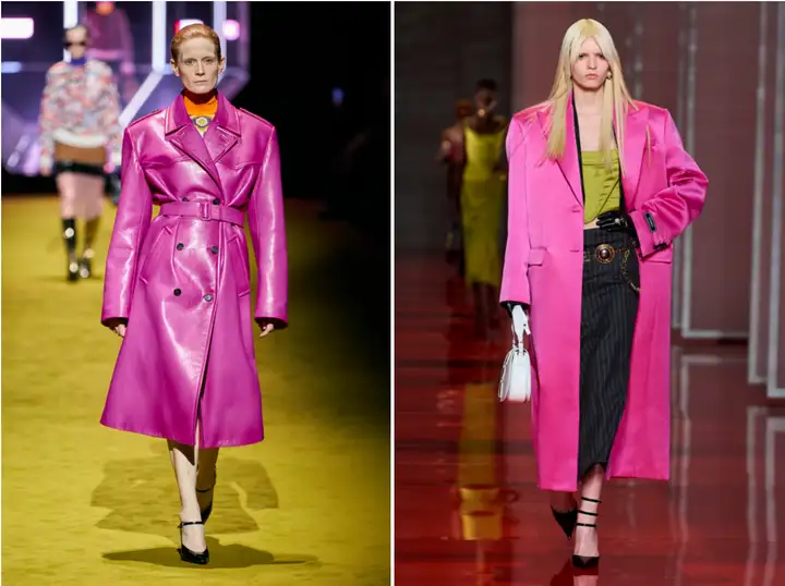 Prada / Versace 2022春夏系列产品除了热门话题度较高的小王子粉,T台下也呈现了其他引人注目的美感。比如说像Stella McCartney 2022春夏系列产品中出现了紫色,Alexander McQueen 2022春夏服饰融入了荧光绿和柑橘色。