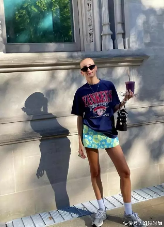 只不过,需要注意的是,服装的元素不要过于复杂。比如,T恤选择了涂鸦,那么下装就尽量选择素色陪衬,也就是我们通常所说的“上繁下简”配搭法。再有,就是大家很容易忽略的一个细节。