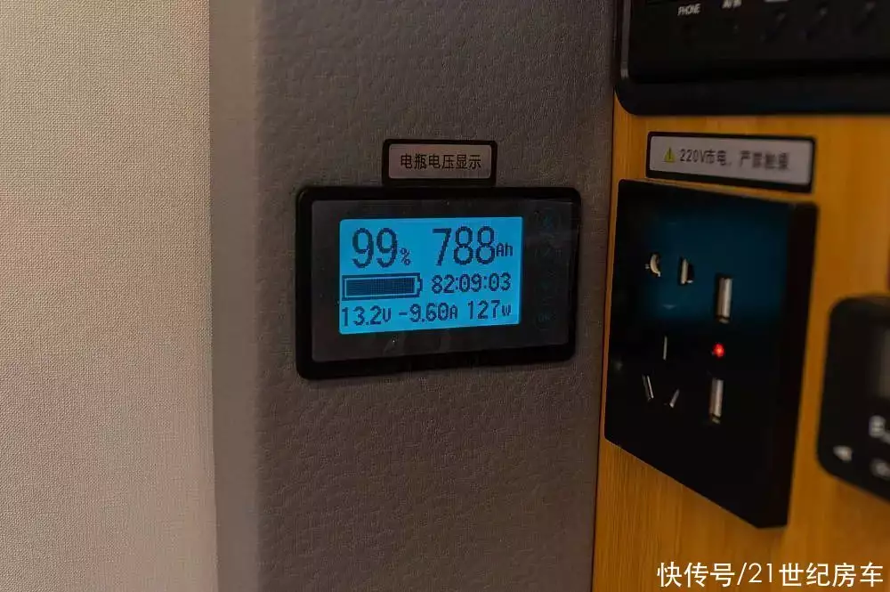 水电各方面,新车型配备220L净水箱、60L灰水箱,800Ah磷酸铁锂电池+12V 3000W逆变器+1000W太阳能板组成了全车电路系统。
