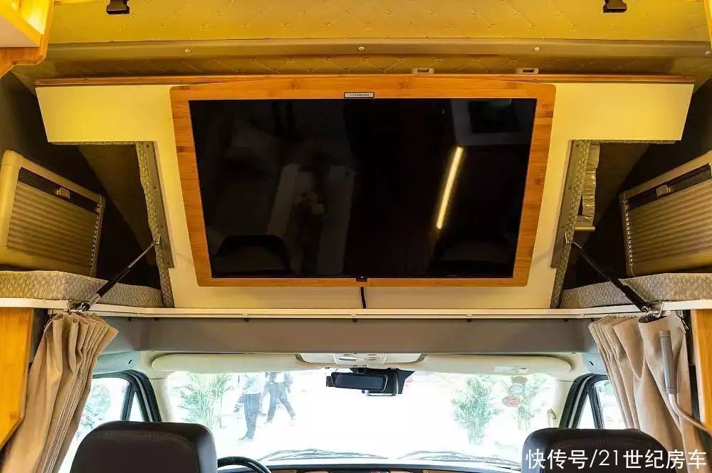 脸颊床位置装备有一台43寸华为电视为车内提供更多娱乐功能,同时还可以播映四路监控动态画面。