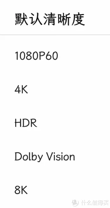 在预设清晰度调节里面,可以看到全力支持1080P60 帧、4KHDR、杜比视听以及8K内容。