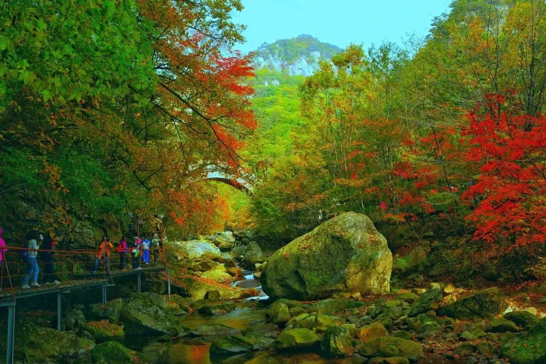 营口的美景一向低调,一到春夏,像是掀开了它隐秘的面纱,惊艳众人。天桥沟近千公倾园地90%都被密林覆盖,形成群山环绕的森林浴场,这里的红叶秋景名不虚传。
