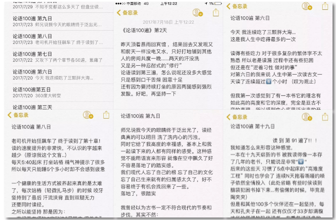 就像在合唱一样,但又别有风味我渐渐的在无限次的重复中找到了读论语的乐趣,就像师父说的的“逆着自己的习性,做对的事情”才能有更快的成长对于我来说,成长就在看似枯燥和困意中起步了到了第六天后 我发现我的定力以及专注力得到了很大的提升。