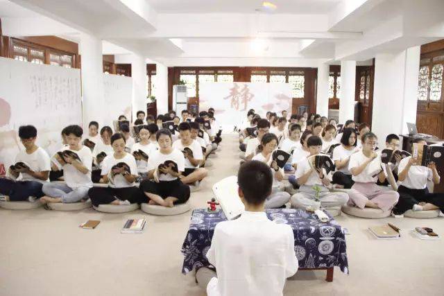 我记得中间有一次我偷偷跑去楼下喝水,听着上面的师兄师姐还带着学生们在继续的读,我就开始无意识的边听边跟着哼读,结果我听到一楼窗外路过的小朋友,还有一些是师弟师妹也在一起朗读.... 那种画面就像是整个书院顿时笼罩在朗朗书声中。