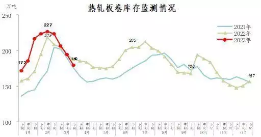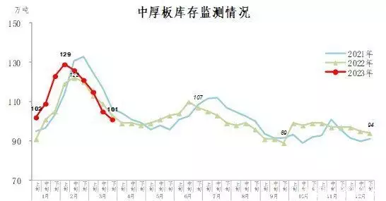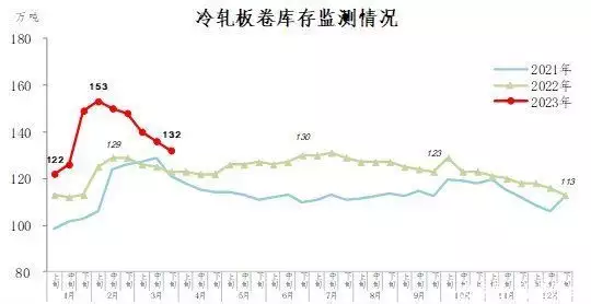 2.板带卷3月中旬,板带卷库存量132亿吨,同比减少4亿吨,下降2.9%,库存量竭尽全力微幅下降;比2月中旬减少16亿吨,下降10.8%;比年末减少19亿吨,下降16.8%;比去年前两年前两年减少9亿吨,下降7.3%。