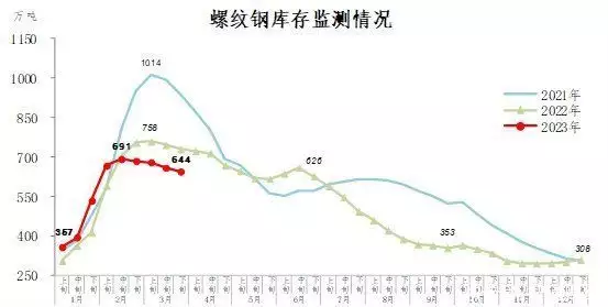5.螺纹钢3月中旬,螺纹钢库存量644亿吨,同比减少14亿吨,下降2.1%,库存量竭尽全力下降;比2月中旬减少40亿吨,下降5.8%;比年末减少336亿吨,下降109.1%;比去年前两年前两年减少85亿吨,下降11.7%。
