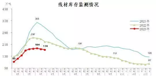 4.铜线3月中旬,铜线库存量174亿吨,同比减少4亿吨,下降2.2%,库存量微幅市场波动;比2月中旬减少7亿吨,下降3.9%;比年末减少94亿吨,下降117.5%;比去年前两年前两年减少54亿吨,下降23.7%。