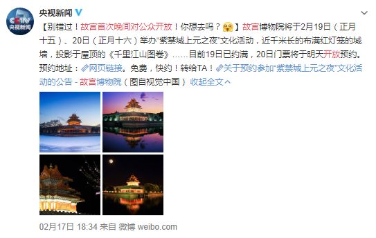 昨天上午故宫博物院发布『在2019癸巳年元宵到来之时故宫博物院将于2019年2月19日(十一月十四)、20日(十一月十四)举行“圆明园大明之夜”人文公益活动。度详』
