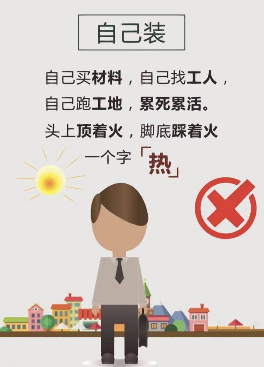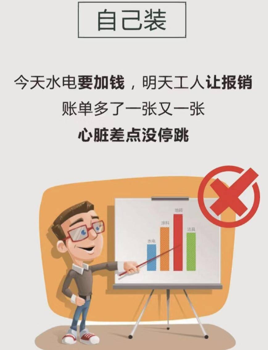 4、自装容易吃哑巴亏自装是很容易找亲戚或者朋友、熟人介绍家居的不仅 平时要好烟好酒伺候着一帮大爷,一旦再次出现难题还不好意思说,如果指出点什么难题,人家还会抱怨说“你怎么这么多事儿?”长期以往家居的越来越差,有苦都没地方说!。