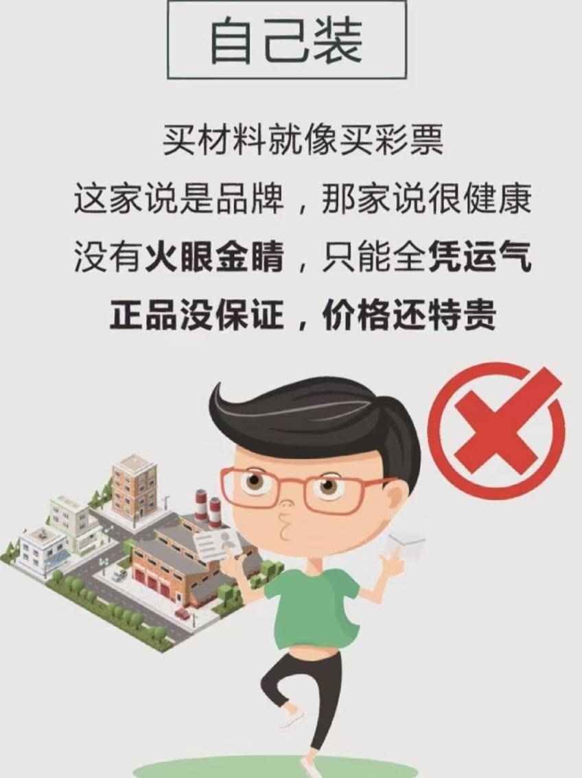 这就说明自装不仅须要他们要跟工人斗智斗勇,还必须得店家斗法,非常考验人!因为他们买 材料的进价要比家居公司高出10%左右,即使买的再多也是零售,而并非从源头渠道批发。