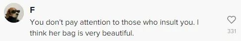 相片源自@zohtaco Tiktok帐号,著作权属原作你不用理会那些侮辱你的人。我觉得你的包很漂亮。