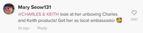 相片源自@zohtaco Tiktok帐号,著作权属原作有一些网民甚至@了Charles & Keith 的官方帐号,希望引起品牌的注意。