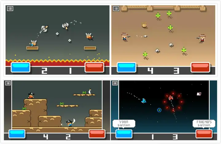 Otto-Ville Ojala 这个开发商应该是最专注于双人格斗游戏的开发商了,它开发的格斗游戏都是双人/多人格斗游戏,而且具有单纯、色彩鲜艳、易上手的特点,多人商业模式下则显得更加有趣而富有技巧性,很适宜跟同学聚会
