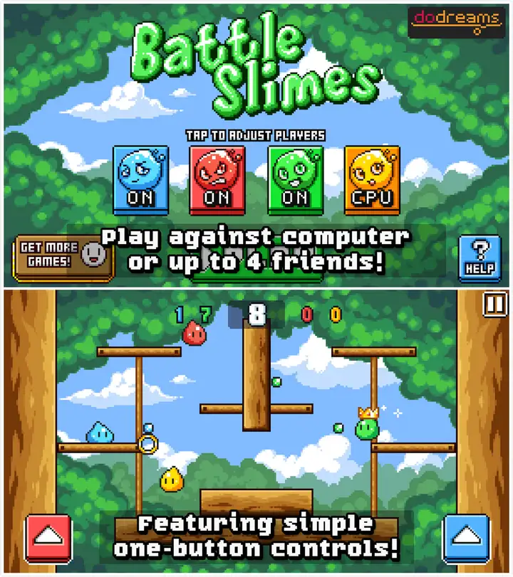 格斗游戏的双人商业模式是轮流跳投而不是同屏操作,其实做成双人同屏可能更好一点史莱姆战场:Battle Slimes