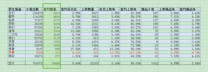这是从起点数据网另存下来的一章截图那小说总数里面,签约率大概平均百分之5,也就是一百本书里面,有5本书签约那土豆所在的玄幻,100本书里面有3本书签约而这三本签约的里面,能够上架赚钱的是百分之六十,1.8本左右能赚到钱的。