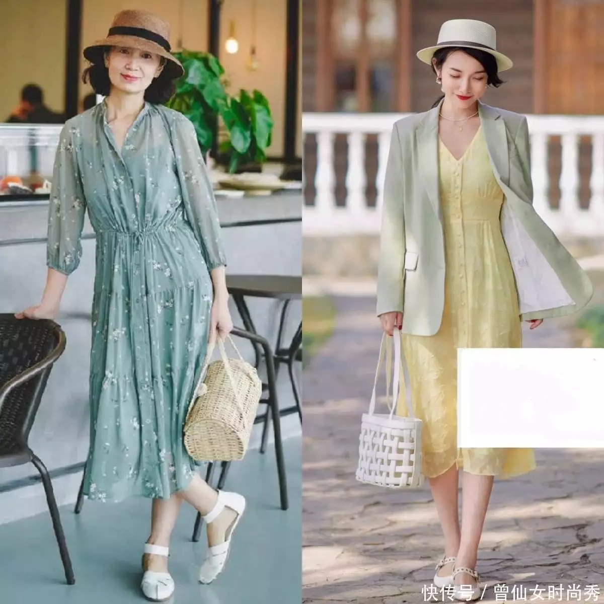 如果我们想要优先选择印花裙,那么便要考虑到简约or复杂的问题,挑选出的花色尽量能简洁清爽一点,尤其是印花图案不能太繁琐,排列的方式要井然有序,拒绝太密集的印花,才能穿出更典雅温柔,并且减龄的功效单品组合思路分析↓。