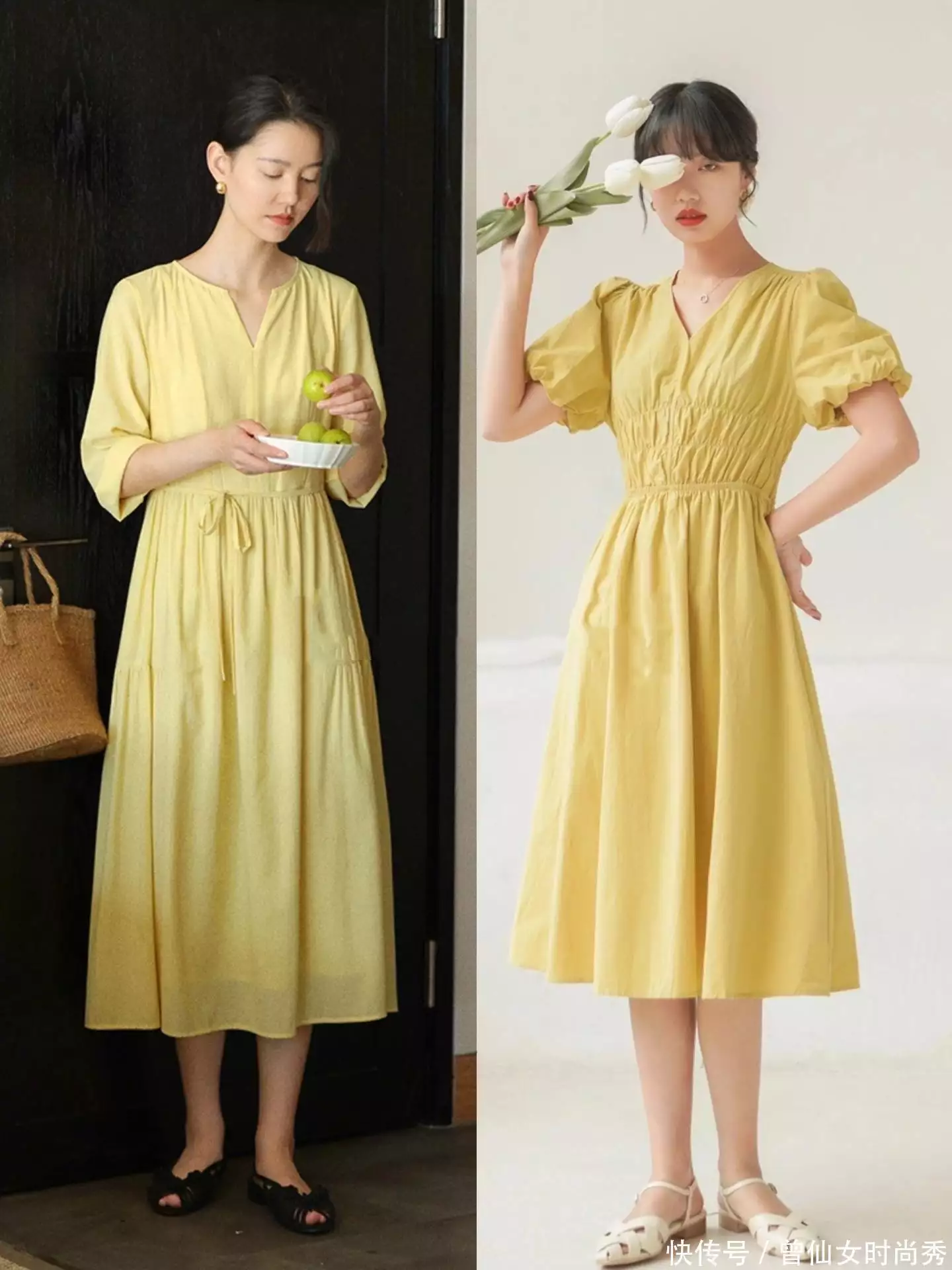 收腰衬衫裙就是不挑年龄和身材的一款衬衫,尤其是这种奶黄色的衬衫裙装,可优先选择的配饰也十分多想要穿出俏皮少女的一面,能试著一下泡泡袖的V领收腰裙;想要营造出更极简利落的一面,就别错过一片式的衬衫裙装