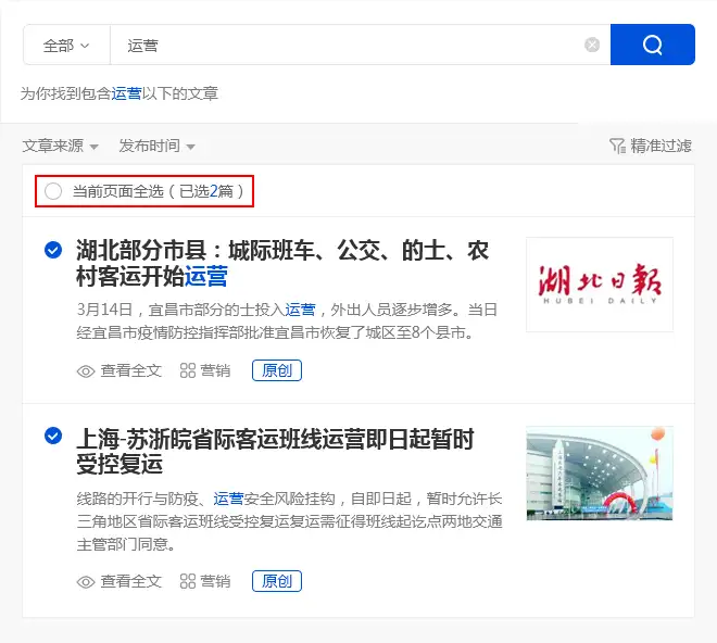 用户也可以点击“当前页面全选”功能,此时用户所选的该文则全部收录于于右侧的操作面板内,用户可在操作面板内展开大批量的音乐创作者。