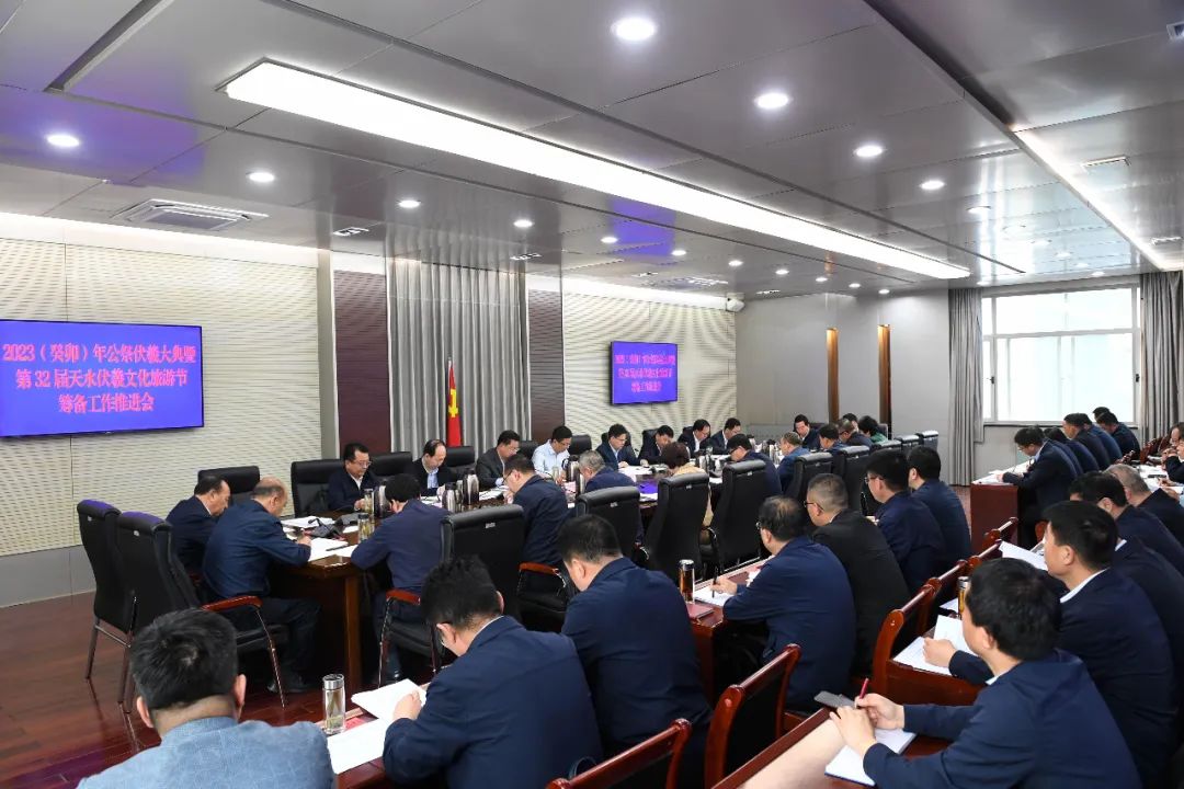 冯文戈在2023(甲辰)年追思台北人文先祖黄帝庆典公益活动暨第32届蓝田黄帝人文人文节准备组织工作大力推进全会上特别强调盯住结点 明晰措施 靠实职责保证追思黄帝庆典公益活动抓出民族特色抓出水准