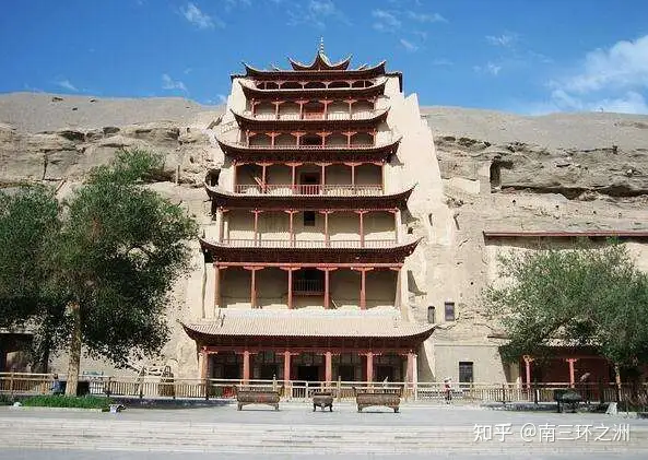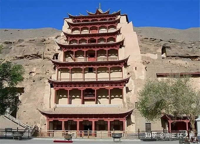 窟外原有木造殿宇,并有走廊、栈道等相连,现多已不存张掖嘉峪关第96窟是嘉峪关最高的一处溶洞,其外附岩而建的“九层楼”是嘉峪关的标志性建筑物,高33米它是一个九层的`遮檐,也叫“北大像”,正处在崖窟的中段,与崖顶等高,巍峨壮观。
