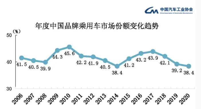 相对而言,日系和日系国际品牌在国内的国际品牌不如自主国际品牌多,但累计也达到近50%的消费市占率一直以来,日系保持显著高于日系国际品牌的整体表现,但在今年日系国际品牌消费市占率已追平日系国际品牌其中,日系国际品牌在2020年从24.2%的占比大幅下滑至23.9%,大幅下滑了0.3个百分比,幅度并不大,但也主要就是受上海通用大众国际品牌大幅下滑系因。