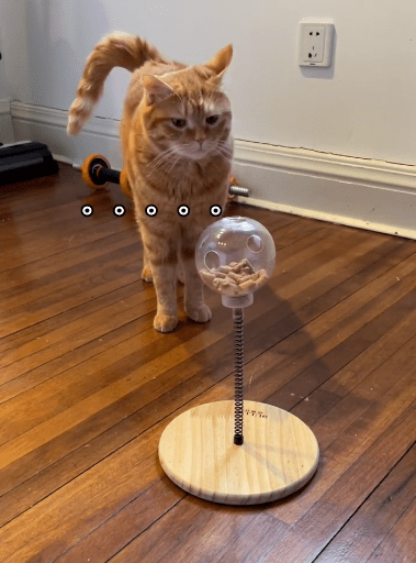 而对于能躺着干饭绝不站着,能有人喂就绝不自己动手的橘猫雷雷来说,这玩偶形同摆设……