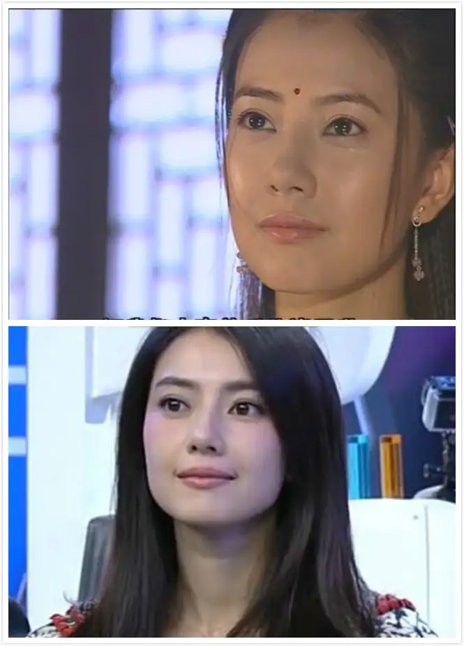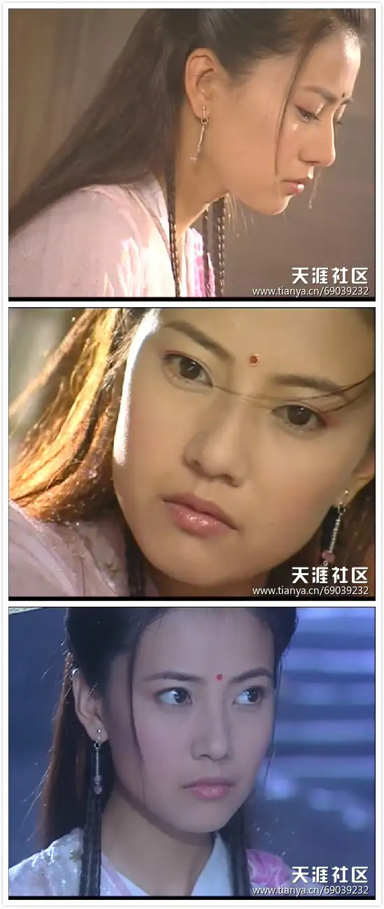 ↑↑↑尤其从这张仰拍的角度看,她的淡黑非常翘非常小巧,下巴也又细又高,真是精巧得不能再精巧的鼻子了所以她这个高分的鼻子是天生的么?这个问题很有争议↓↓↓从倚天屠龙记的某些老相片上看她本来的鼻子就很高很小巧了。