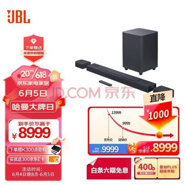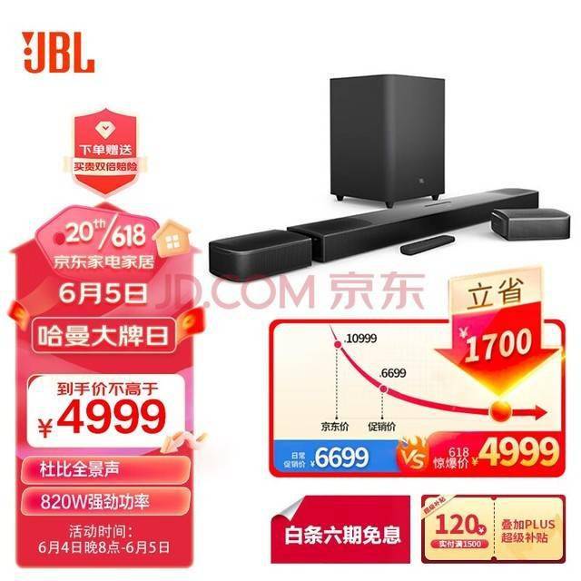 ?本次打折公益活动中,JBL BAR 9.1的市价为6699元,现特惠4999元;JBL BAR 1000的市价为9999元,现特惠8999元;JBL BAR 1300X的市价为16999元,现特惠14999元。