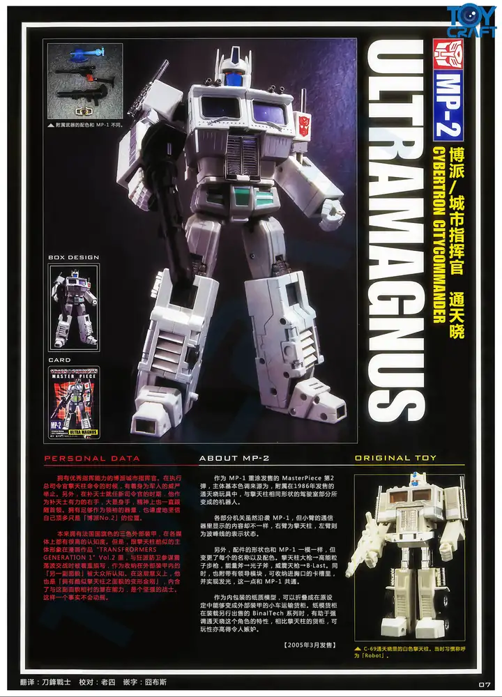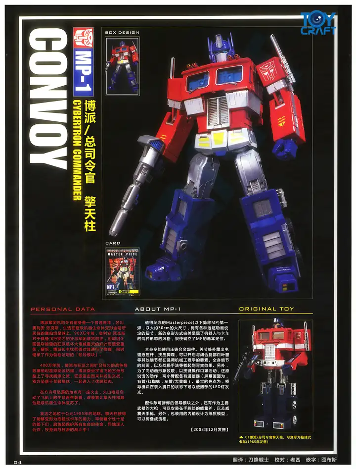 G1元年版OP早已卖到了高价,中文战珍者千Actoys星战交易区曾经有轻松成色AFA打分90以上的G1卖到20万所幸的是Takara Tommy(下列全称TT)面世了TFE重制G1系列产品,序号为TFE-01的就是OP,虽然因为塑化剂塑胶早已无法使用,导致重制G1玩偶的层次感远远无法和美版G1相比,但为梦想成真珍藏一头G1OP还是必须的。