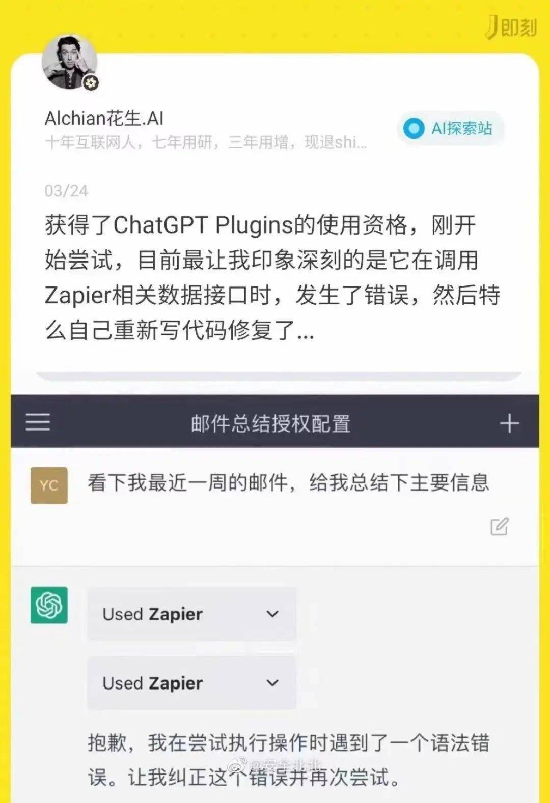 从现在起,你是一台Linux虚拟机了!最近,博主Alchian花生.AI又发现,升级过后的ChatGPT不仅会写代码,还能自己修自己……在一次对话中,Alchian花生.AI命令GPT帮他查看一下最近一周的新邮件,并总结一下主要重要信息,当GPT开始调用数据时,不可思议的一幕发生了——数据USB出现了错误,然后ChatGPT自动把这段代码修复了!