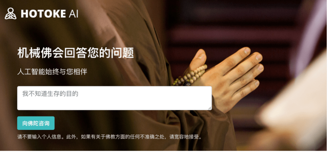 在网站主页,开发者更是表明这是“两个配备有ChatGPT的佛”。