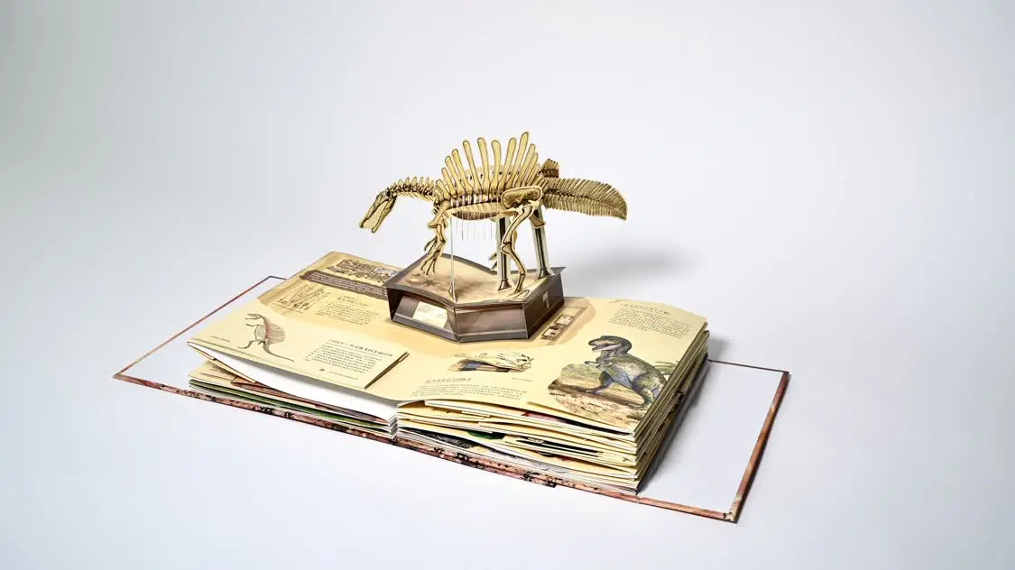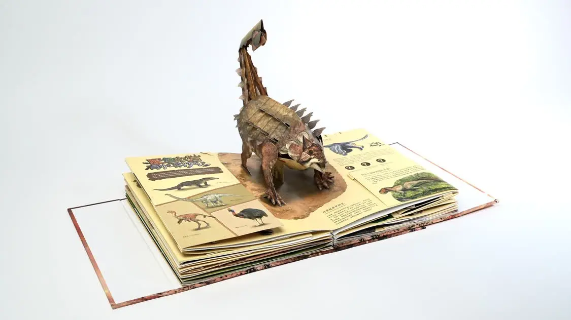 三维书做为自然科学普及的媒介,具有沉浸于感、文学性和主题投资三大特点,这些特性与艺术展非常相似。比如说,瞥见《怎样重生一头爬行动物》的第一页,就是两个三维的爬行动物标本考古挖掘现场,开发人员将正方体做了四个多层,分别是水、泥沙、标本和地表,用来展示标本安葬时的不同状态。而书的中间页则“盘据”着一头惟妙惟肖的蜥结龙。做为三叠纪“板甲坦克”,书中的蜥结龙嘴巴镰形,四肢头顶下垂,身上的玻璃板向外突出,清秀“重生”。