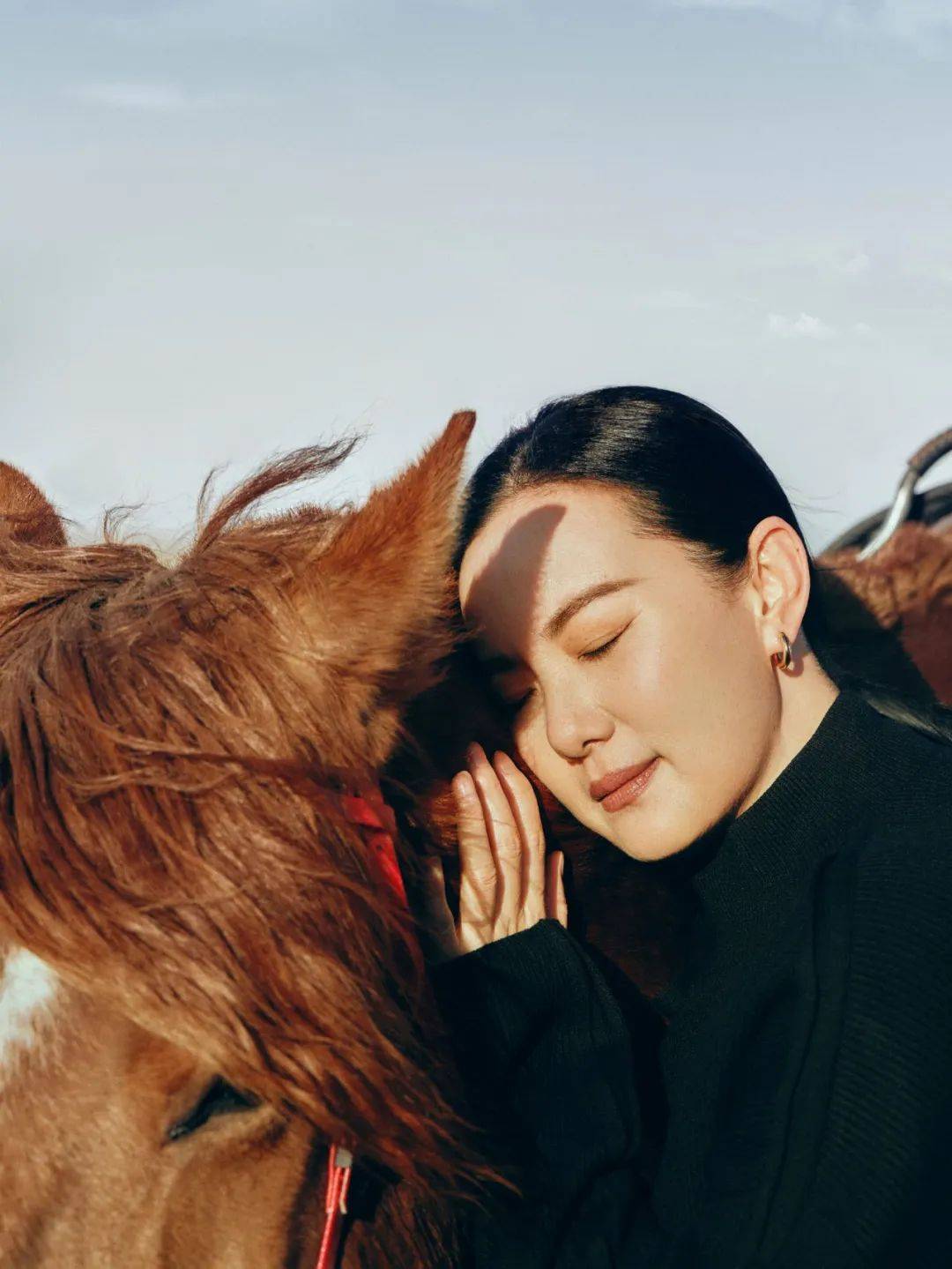 她回到了家乡内蒙古,在自然放松的环境下,像个小女孩一样开心蹦跳着,这样的画面,让人不禁嘴唇上扬。