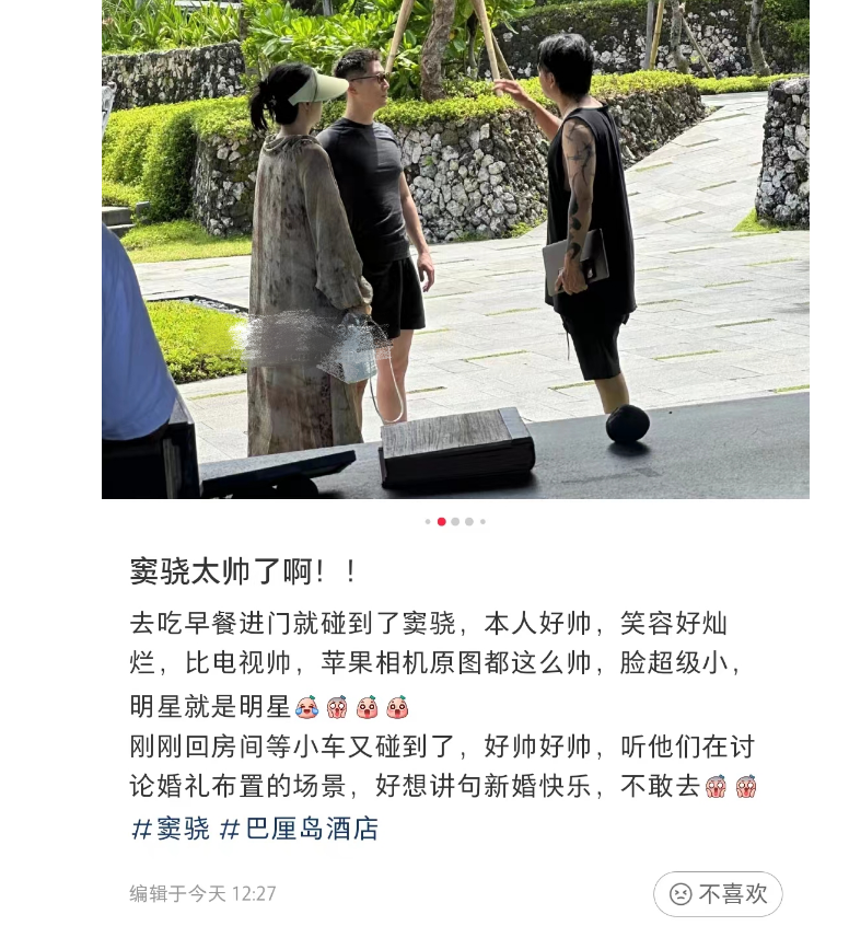 稍早以后,该网民还贴出了周渝民的帅照,并发文猛夸周渝民本人超帅气,比电视上还帅。据网民透漏,周渝民正在讨论婚宴布置的场景,连这些事情都是亲力亲为,周渝民是真的非常看重何张伦硕呀,莫名又被喂了一嘴狗粮。