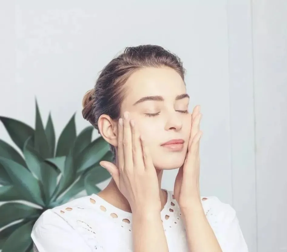 之后双手轻轻按压全脸,特别是眼周、口周、法令纹等容易出现初老痕迹的位置。