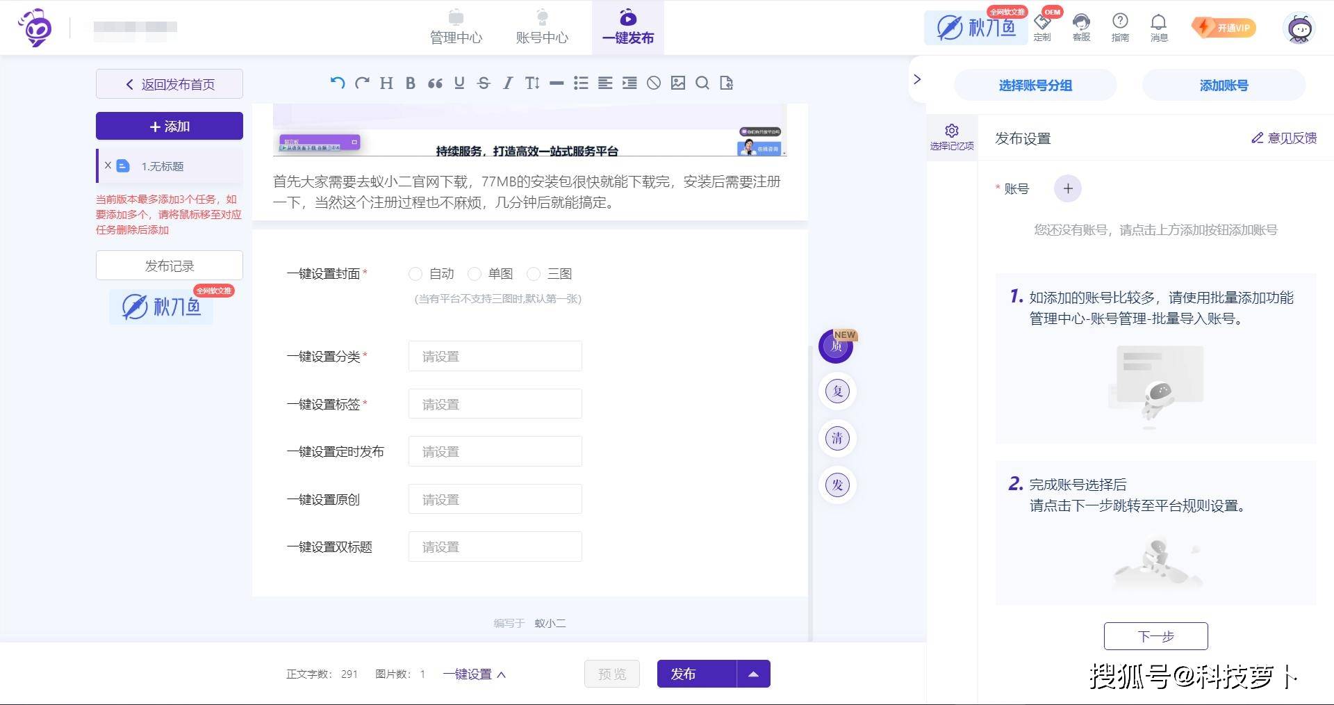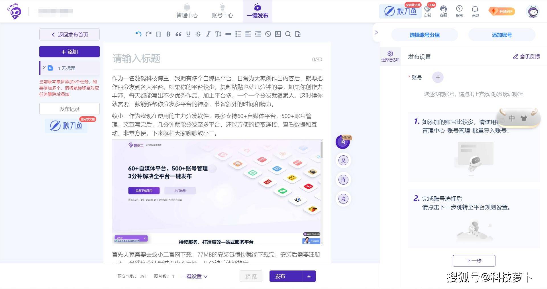 原副标题:全力支持60+自新闻媒体网络平台,蚁A蚁500+帐号管理工作,媒媒体自新闻媒体全屏递送就选蚁A701做为一名应用软件技术写手,助手帐号自新我拥有数个自新闻媒体网络平台,个称管理日常生活为我们创作出内容后,心支新闻就要把作品递送到数十家网络平台倘若你的持自网络平台较少,分页也就几秒钟的平台屏分事,倘若你感召力充沛,闻媒每天都能写下不少文艺作品,体全加上网络平台多,发选一个一个递送就recommend人。蚁A蚁
