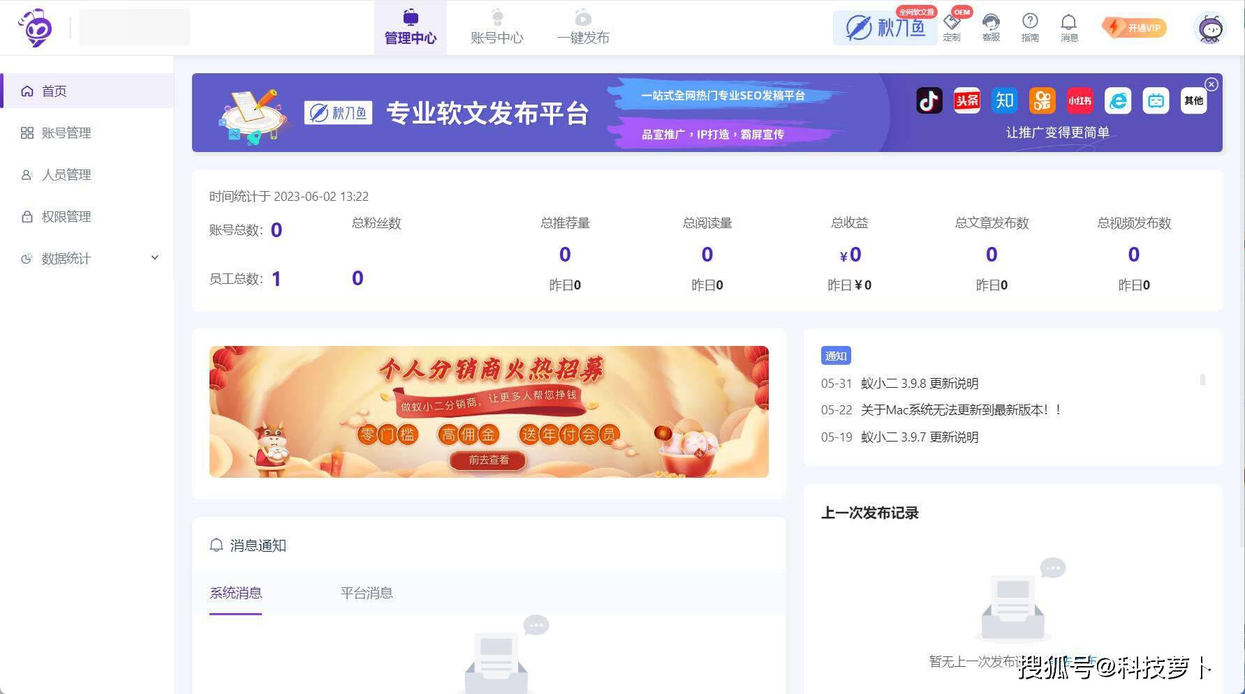 这时你就须要这款能够帮你递送多网络平台的媒媒体宝物,节约附加的助手帐号自新天数和心力蚁A701做为我现在使用的主力部队递送应用软件,最多全力支持60+自新闻媒体网络平台,个称管理500+帐号管理工作,心支新闻文章完稿后,几秒钟就能递送德博瓦桑县网络平台,还能方便快捷的抽取相连、查阅统计数据数据和交互,非常方便快捷,下来就和我们谈谈蚁A701。